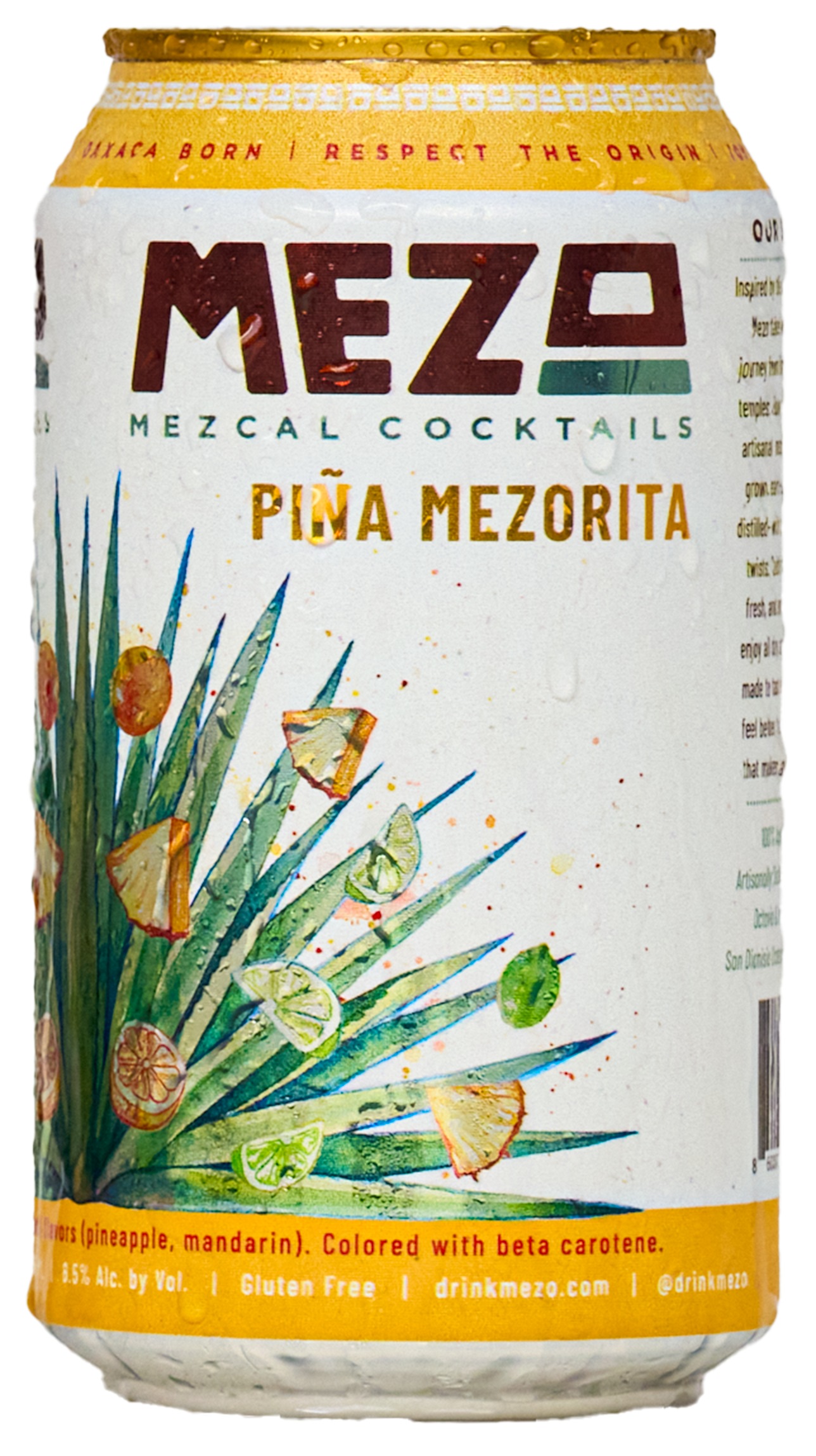 Mezcal Espadín, sparkling water, organic lime juice, organic agave nectar, organic cane sugar, monk fruit juice, sea salt, natural flavors (pineapple, mandarin, orange, lemon), beta-carotene (for color).